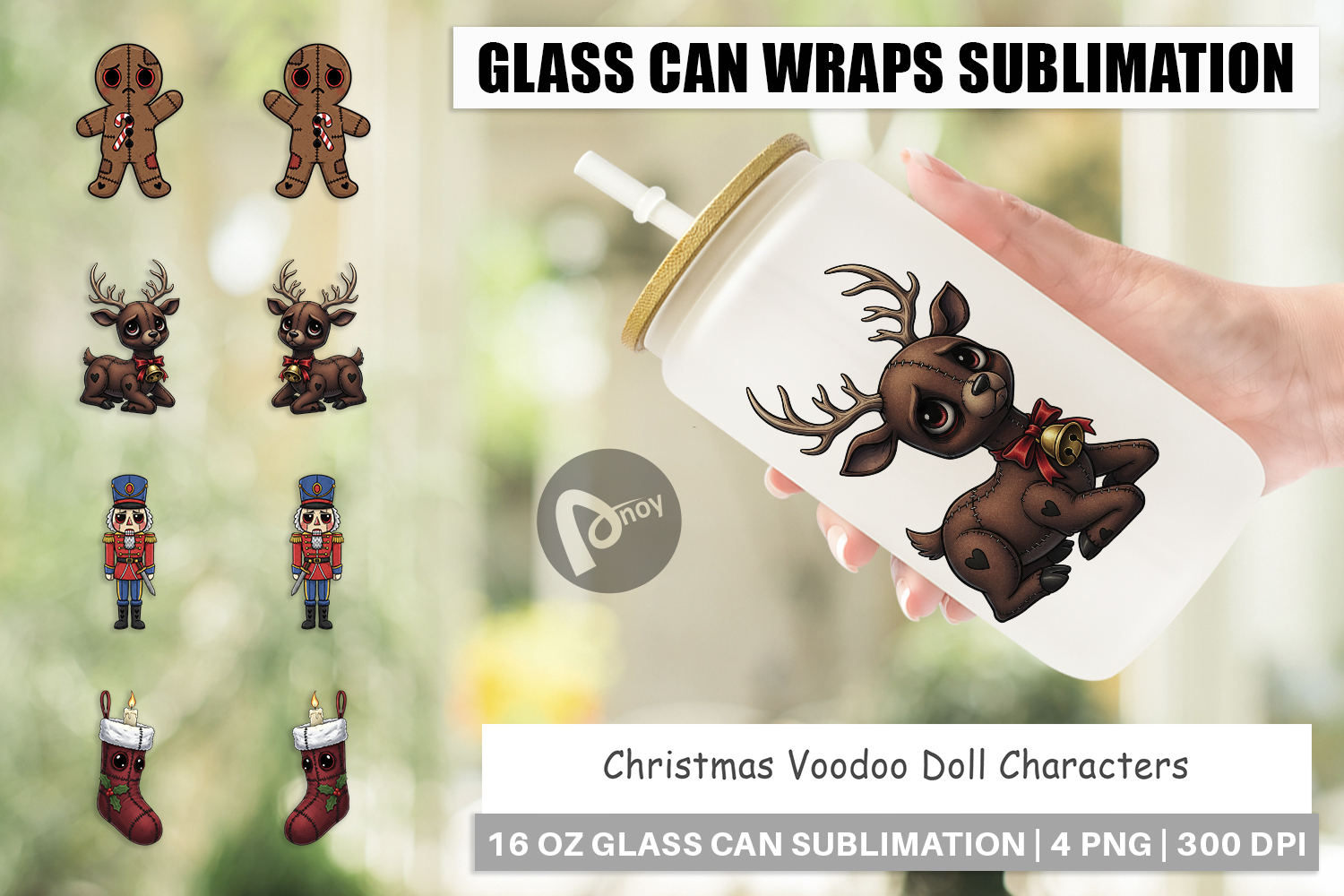Sublimation Designs Diy Gift Idea Libbey Glass Sublimation Glass Can Wrap Png Printable Cup Wrap Voodoo Doll Characters Goth Aesthetic Gift Gothic Christmas Cup Creepy Cute Libbey Spooky Holiday Glass