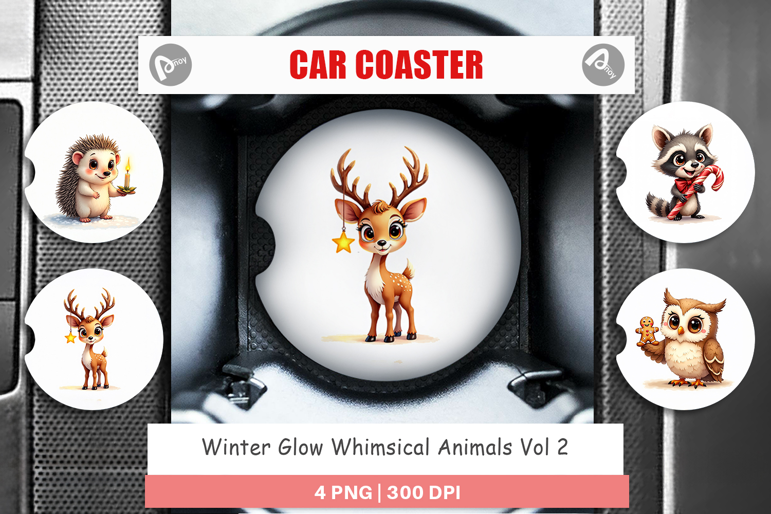Whimsical Animals Sublimation Designs Car Coaster Png Car Coaster Sublimation Cute Animal Theme Printable Gift Png Diy Car Accessories Winter Glow Animals Glowing Winter Design Magical Winter Gift