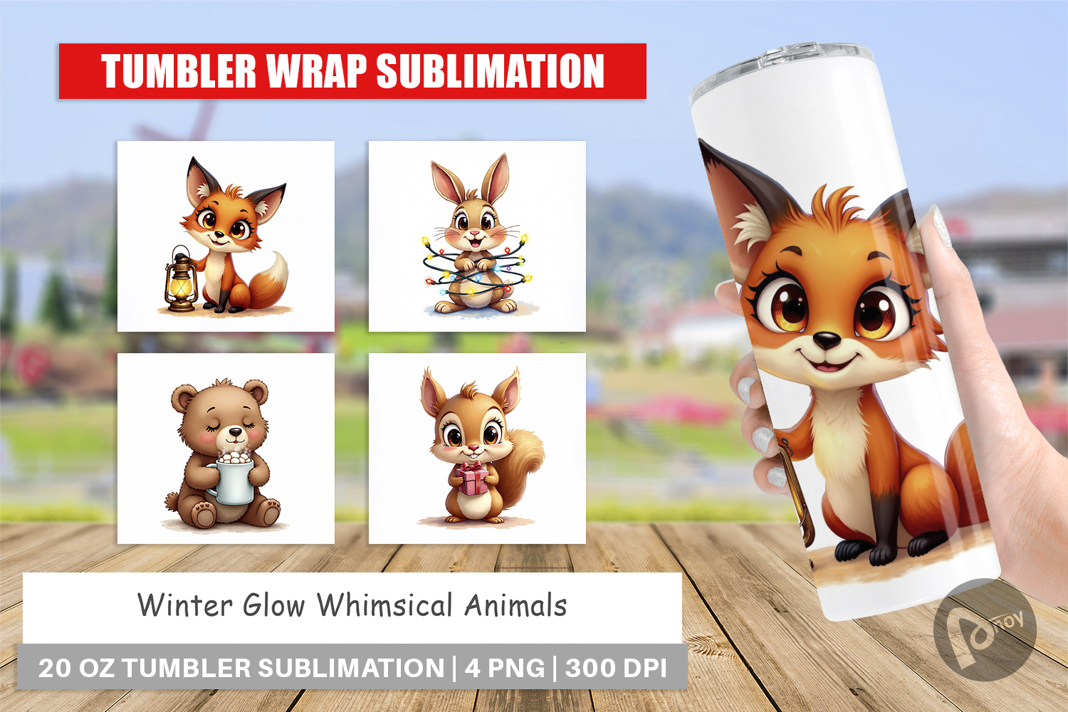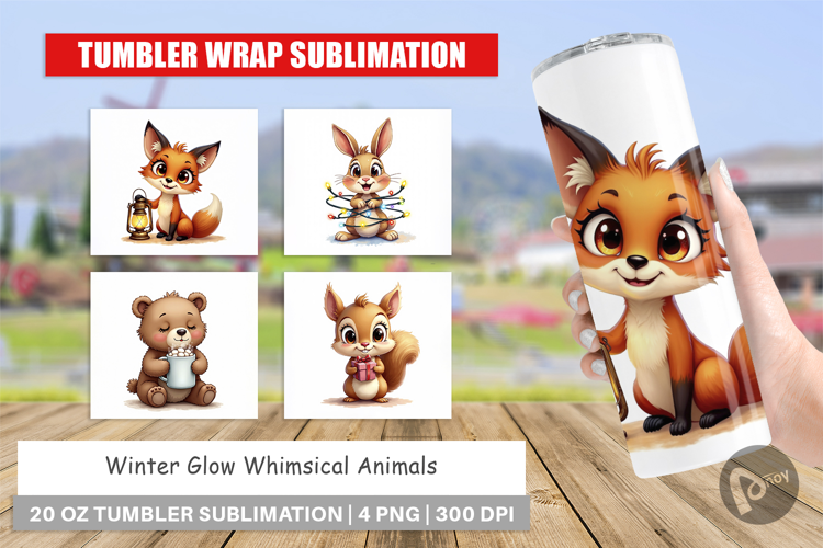 Sublimation Designs Diy Gift Idea Tumbler Sublimation Design Tumbler Wrap Png Printable Tumbler Wrap Cute Animal Theme Winter Glow Animals Magical Winter Gift Whimsical Animal Wrap Glowing Winter Tumbler