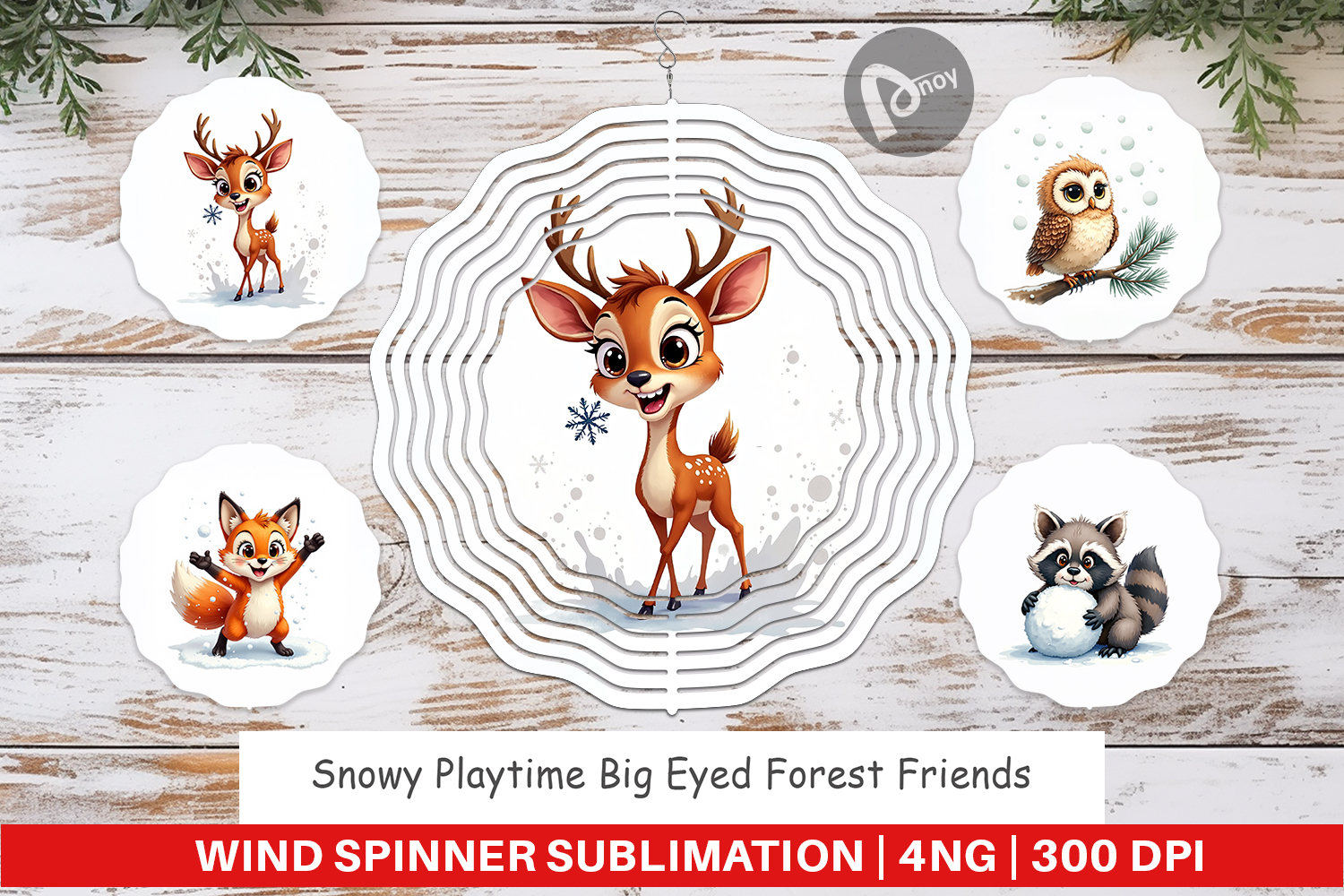 Sublimation Designs Diy Gift Idea Wind Spinner Sublimation Winter Wind Spinner Sublimation Spinner Design Printable Garden Decor Cute Animal Gift Forest Friends Theme Snowy Playtime Animals Big Eyed Animal Decor