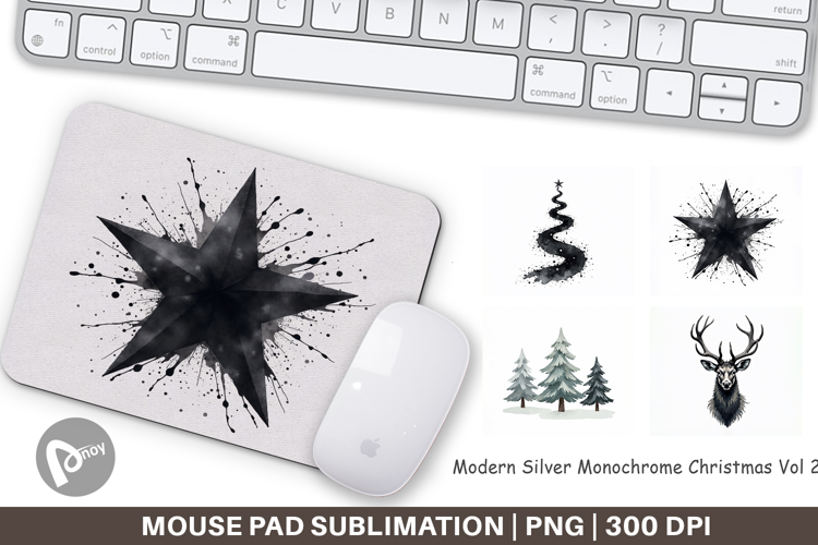 Sublimation Designs Diy Gift Idea Mouse Pad Sublimation Modern Christmas Design Mouse Pad Png Printable Gift Png Monochrome Holiday Decor Silver Christmas Theme Minimalist Office Gift Black And White Desk Mat