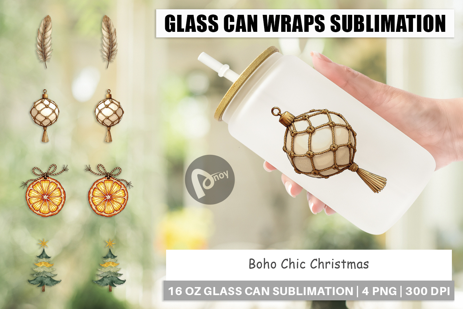 Sublimation Designs Christmas Party Gift Boho Christmas Design Libbey Glass Sublimation Glass Can Wrap Png Festive Drinkware Design Printable Gift Png Diy Glass Can Bohemian Christmas Gift Chic Holiday Iced Coffee