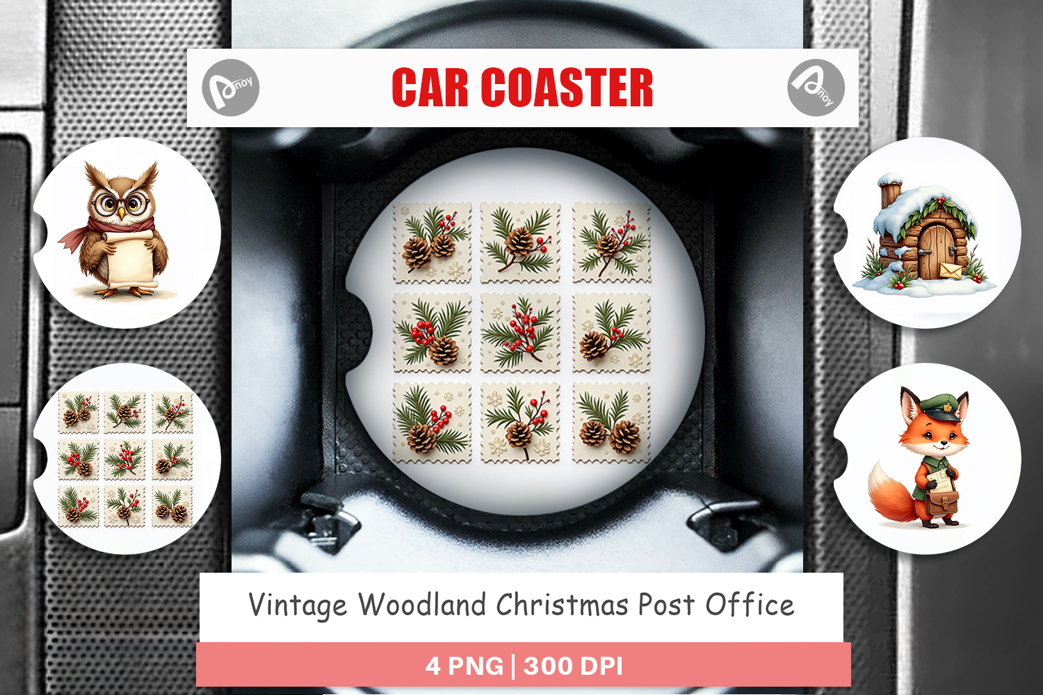 Woodland Christmas Sublimation Designs Car Coaster Png Car Coaster Sublimation Rustic Holiday Decor Diy Car Accessory Printable Gift Png Cozy Christmas Gift Vintage Woodland Post Forest Post Office