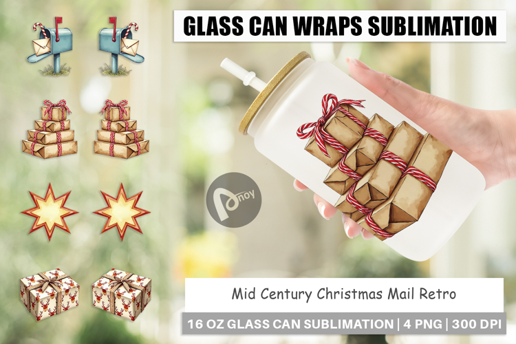 Sublimation Designs Mid Century Christmas Diy Gift Idea Libbey Glass Sublimation Glass Can Wrap Png Retro Christmas Mail Retro Lover Gift Printable Iced Coffee Vintage Style Glass Holiday Glass Gift