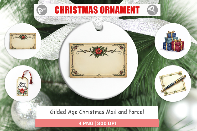 Sublimation Designs Christmas Tree Decor Diy Gift Idea Ornament Design Png Round Ornament Sublimation Printable Gift Png Holiday Keepsake Gift Gilded Age Christmas Vintage Parcel Art Christmas Mail Ornament