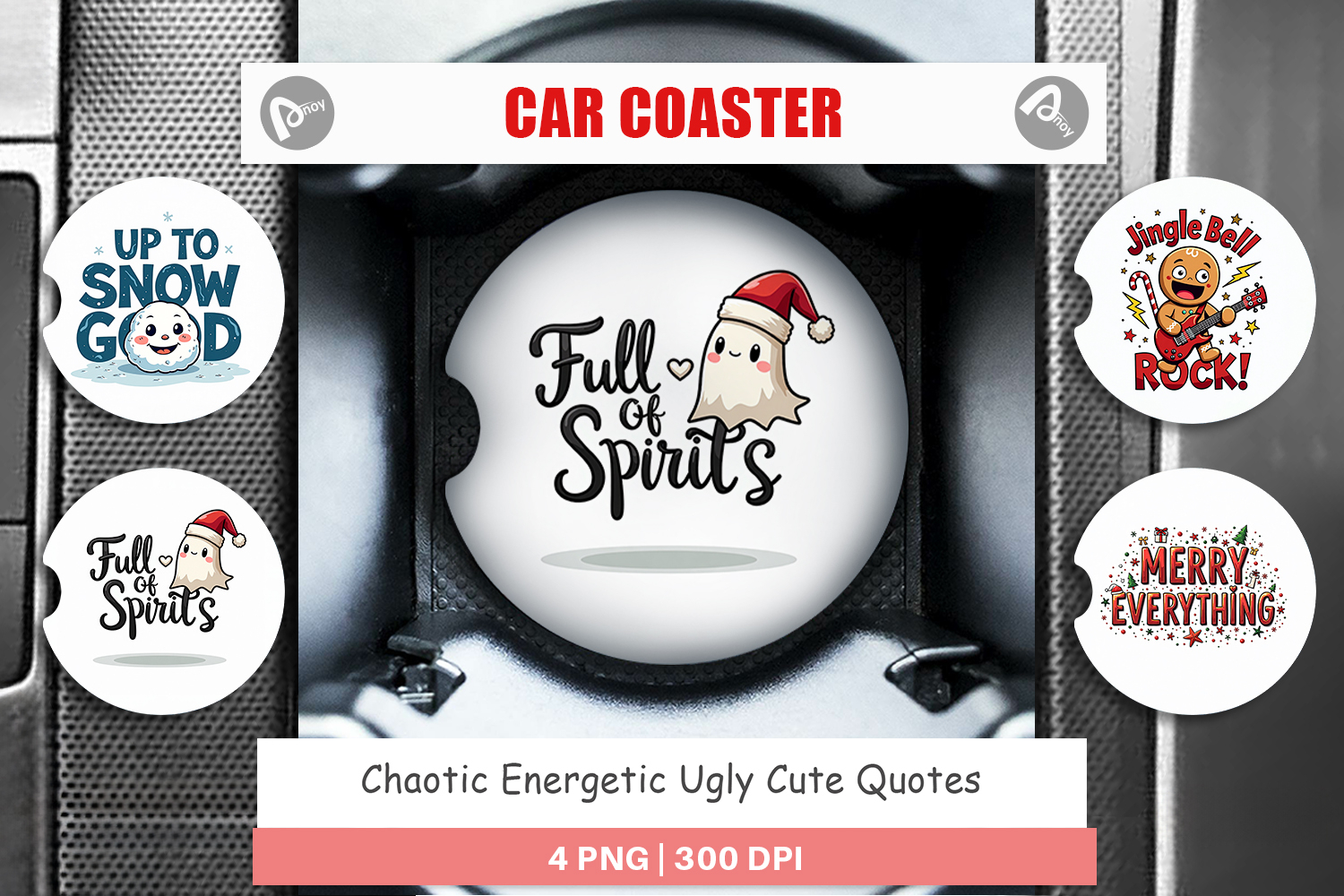 Sublimation Designs Funny Holiday Quotes Diy Gift Idea Car Coaster Png Car Coaster Sublimation Gift For Coworker Printable Gift Png Quirky Christmas Gift Chaotic Holiday Spirit Energetic Ugly Cute