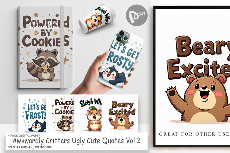 Digital Background Craft Paper Printable Scrapbook Paper Digital Paper Bundle Scrapbook Page Junk Journal Pages Sublimation Paper Background Awkwardly Festive Critters Ugly Cute Animals Animal Quote Paper