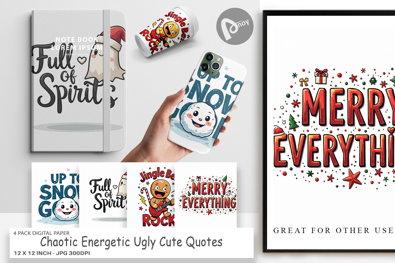 Digital Background Craft Paper Printable Scrapbook Paper Digital Paper Bundle Scrapbook Page Funny Holiday Quotes Junk Journal Pages Sublimation Paper Background Chaotic Holiday Spirit Energetic Ugly Cute