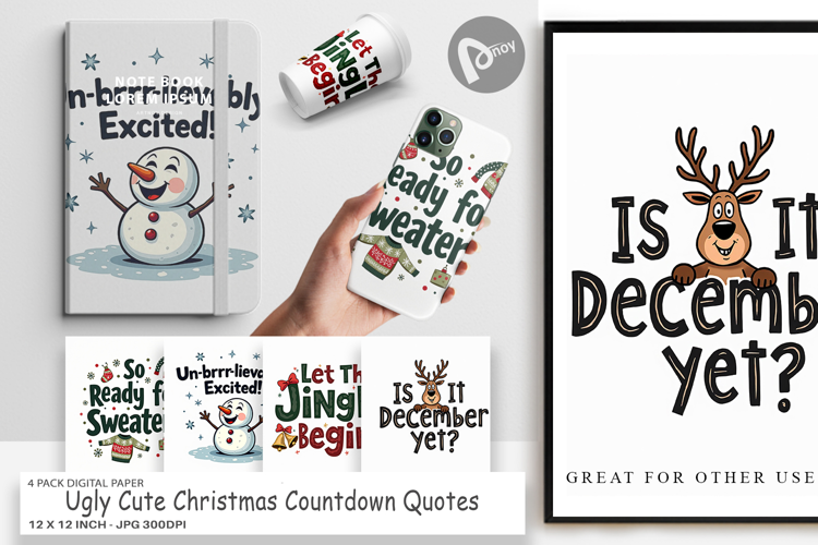 Digital Background Craft Paper Printable Scrapbook Paper Digital Paper Bundle Scrapbook Page Christmas Countdown Junk Journal Pages Sublimation Paper Background Ugly Cute Christmas Quirky Holiday Quotes