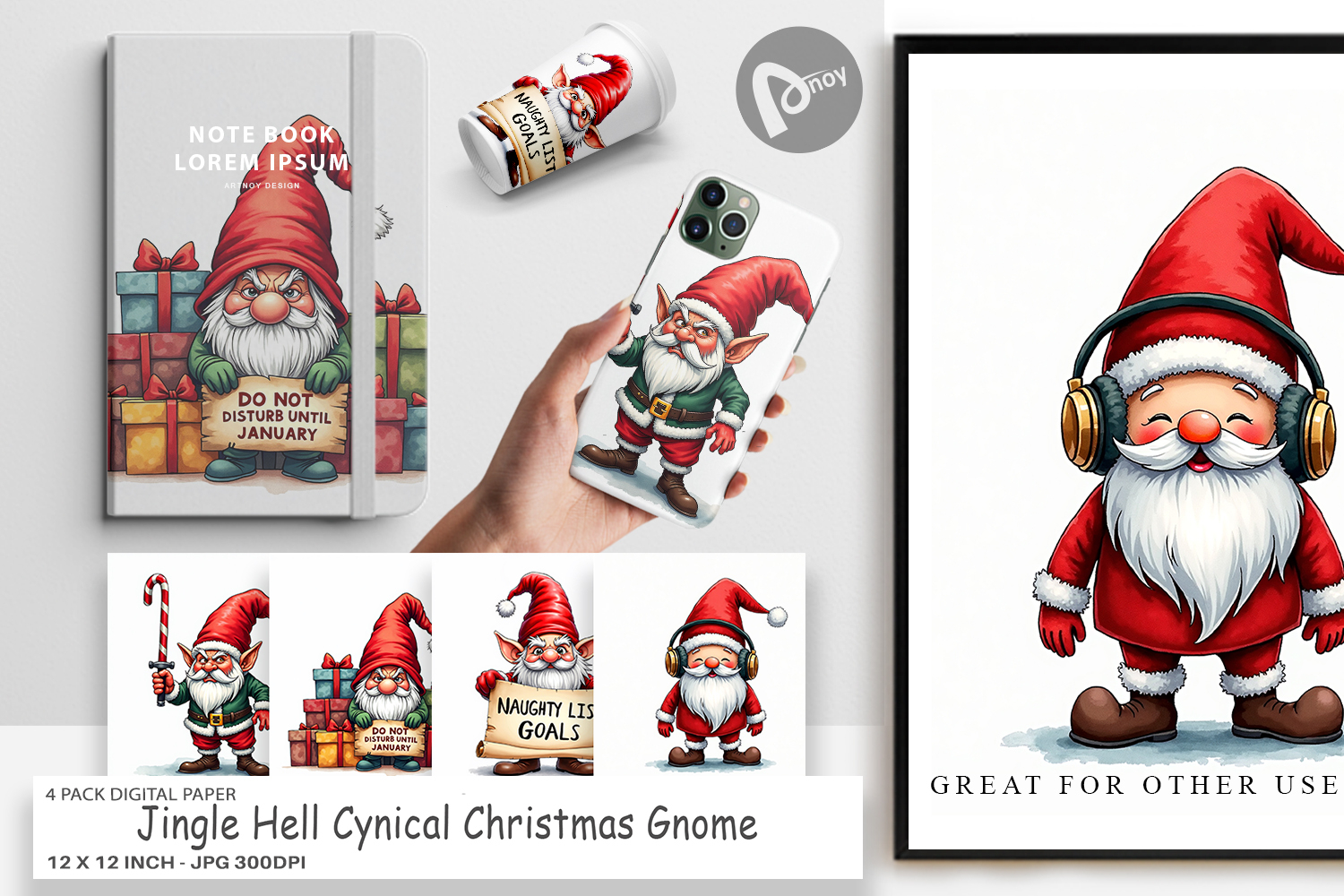 Digital Background Printable Scrapbook Paper Digital Paper Bundle Scrapbook Page Holiday Craft Paper Junk Journal Supply Sarcastic Gnome Sublimation Paper Background Cynical Christmas Jingle Hell Gnome