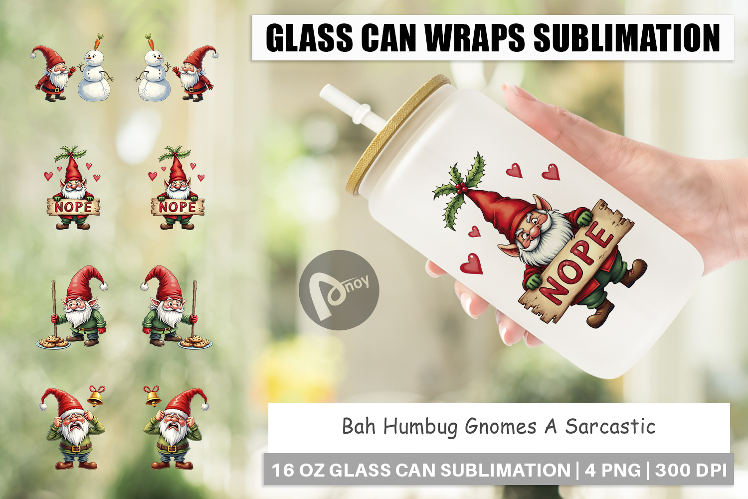 Sublimation Designs Diy Christmas Gift Watercolor Gnomes Printable Gift Wrap Funny Holiday Gift Libbey Glass Sublimation Glass Can Wrap Png Bah Humbug Gnomes Sarcastic Glass Can Cynical Christmas