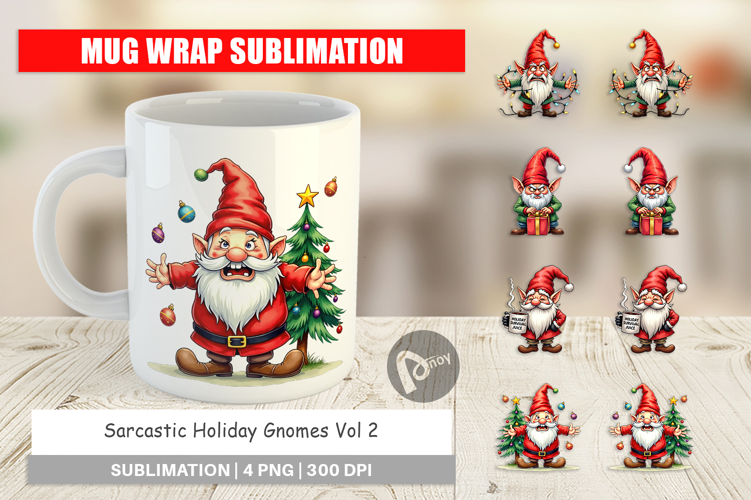 Sarcastic Holiday Gnomes Mug Wrap example image 1