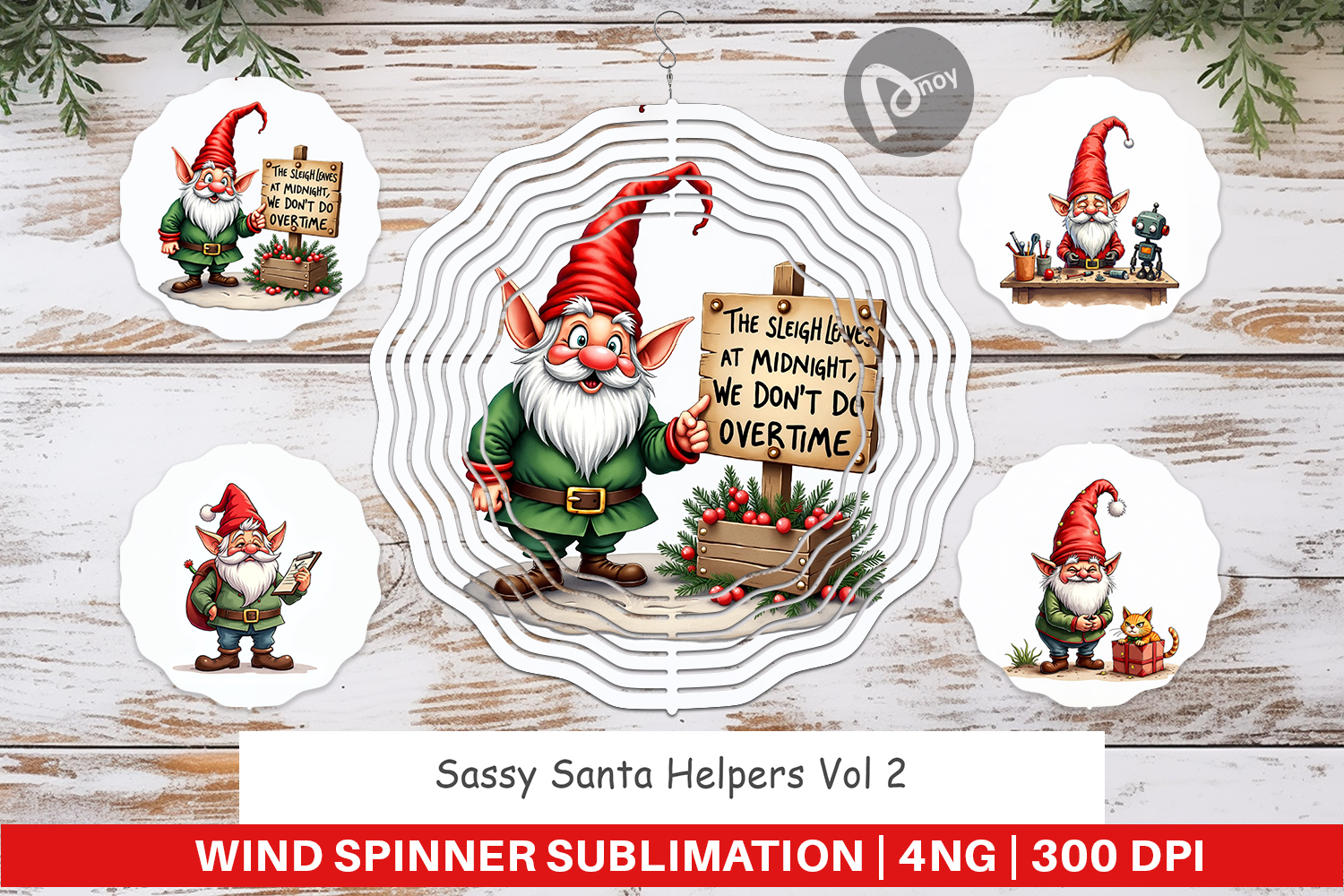 Sublimation Designs Diy Christmas Gift Funny Holiday Gift Wind Spinner Sublimation Sublimation Spinner Design Printable Gift Png Sassy Santa's Helpers Watercolor Gnome Crew Gnome Crew Png Sassy Gnome Spinner