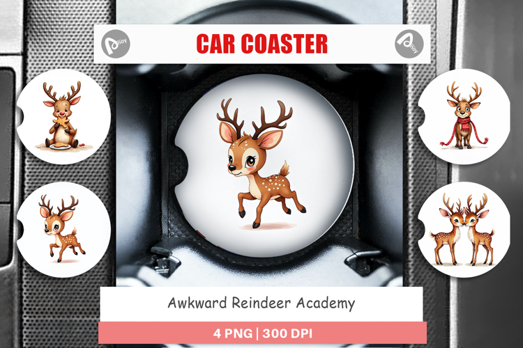 Awkward Reindeer Academy Car Coaster example image 1