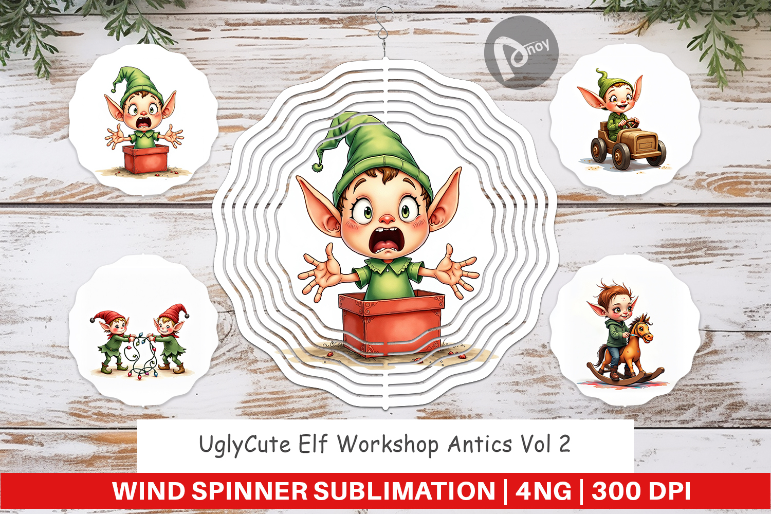 Sublimation Designs Secret Santa Gift Wind Spinner Sublimation Sublimation Spinner Design Diy Garden Art Holiday Outdoor Decor Printable Gift Png Uglycute Elf Workshop Elf Workshop Antics Funny Elf Spinner