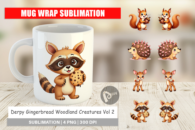 Woodland Creatures Coffee Cup Design Sublimation Designs Mug Sublimation Design Mug Wrap Funny Holiday Gift Printable Mug Template Cute Gingerbread Mug Derpy Gingerbread Gingerbread Animals