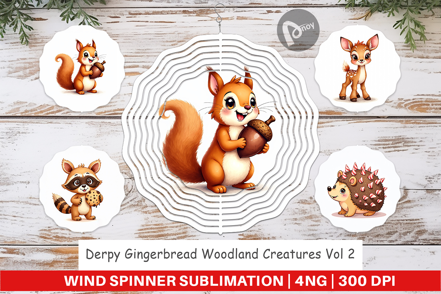 Woodland Creatures Sublimation Designs Diy Gift Idea Outdoor Decoration Wind Spinner Sublimation Sublimation Spinner Design Funny Holiday Decor Derpy Gingerbread Gingerbread Animals Cute Gingerbread Spinner