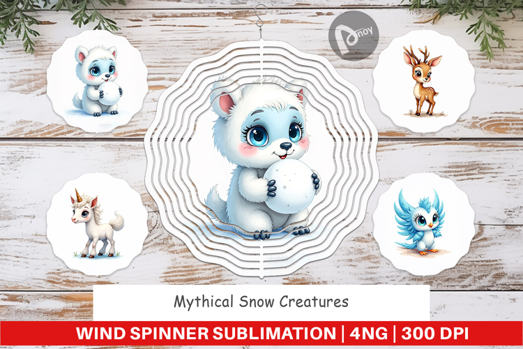 Diy Gift Idea Outdoor Decor Png Wind Spinner Sublimation Sublimation Spinner Design Printable Spinner Png Mythical Snow Creatures Fantasy Animal Gift Winter Creature Spinner Mythical Garden Decor Fantasy Patio Decor