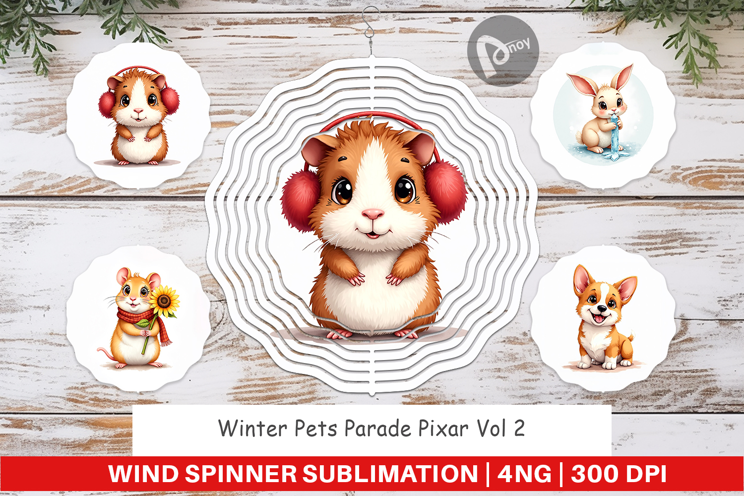 Pet Lover Gift Diy Gift Idea Outdoor Decor Png Wind Spinner Sublimation Sublimation Spinner Design Christmas Garden Decor Cute Pet Spinner Printable Spinner Png Winter Pets Parade Holiday Animal Gift