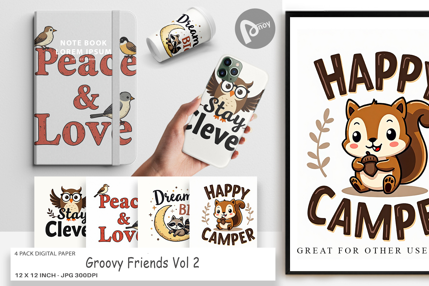 Digital Background Craft Paper Printable Scrapbook Paper Digital Paper Bundle Scrapbook Page Junk Journal Supplies Sublimation Paper Background Cute Animal Quotes Groovy Animal Theme Vintage Kawaii Design