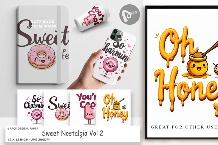 Digital Background Craft Paper Printable Scrapbook Paper Digital Paper Bundle Scrapbook Page Junk Journal Supplies Sublimation Paper Background Retro Kawaii Dessert Sweet Nostalgia Design Cute Dessert Quote