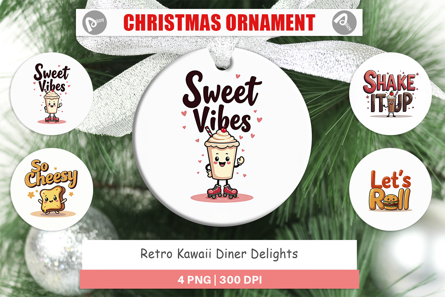 Sublimation Designs Diy Gift Idea Ornament Design Png Round Ornament Sublimation Printable Gift Png Gift For Foodie Retro Diner Delights Kawaii Food Quote 50s Diner Decor Cute Food Ornament