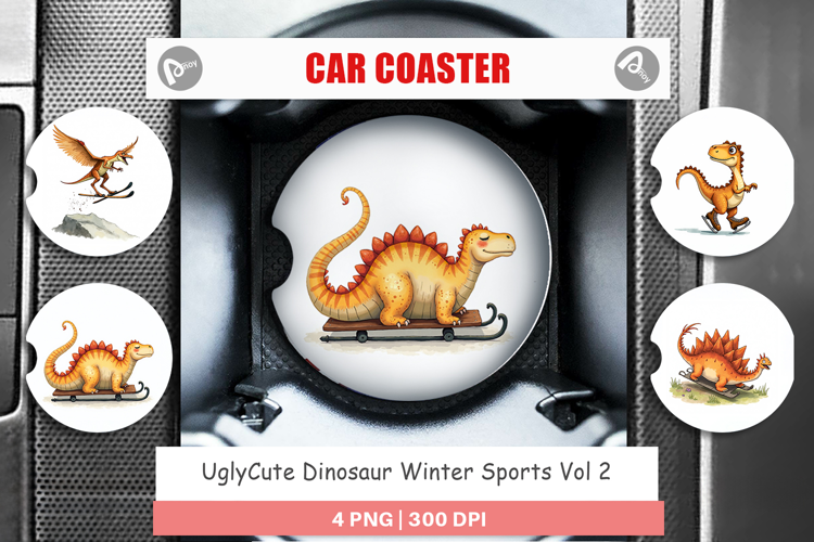 Sublimation Designs Car Coaster Png Car Coaster Sublimation Dinosaur Lover Gift Printable Gift Png Diy Car Gift Uglycute Dinosaur Winter Sports Design Dinosaur Car Accessory Cute Sports Theme