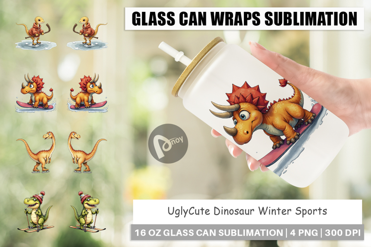 Dinosaur Lover Gift Libbey Glass Sublimation Glass Can Wrap Png Cute Sports Design Printable Can Wrap Winter Season Gift Diy Libbey Glass Uglycute Dinosaur Wrap Winter Sports Glass Dinosaur Can Wrap