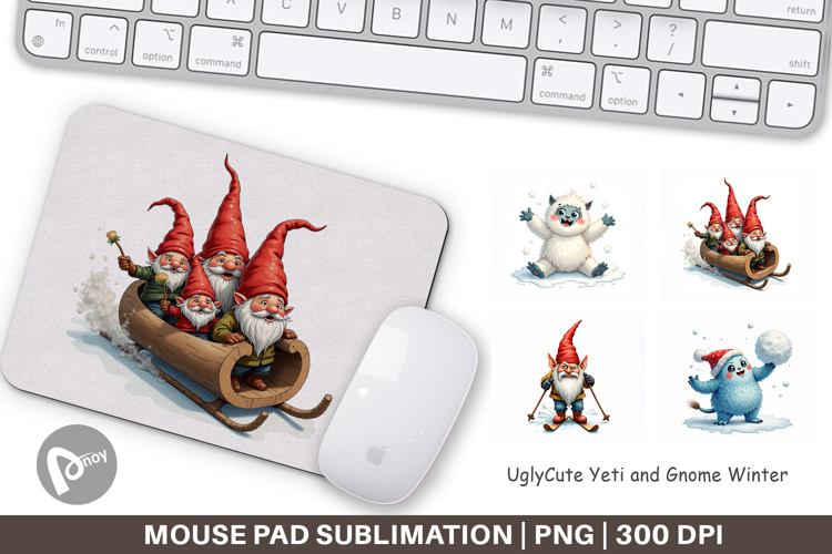 Sublimation Designs Mouse Pad Sublimation Mouse Pad Png Diy Desk Decor Yeti Lover Gift Printable Office Gift Winter Sports Theme Uglycute Yeti Design Gnome Winter Games Cute Gnome Desk Mat