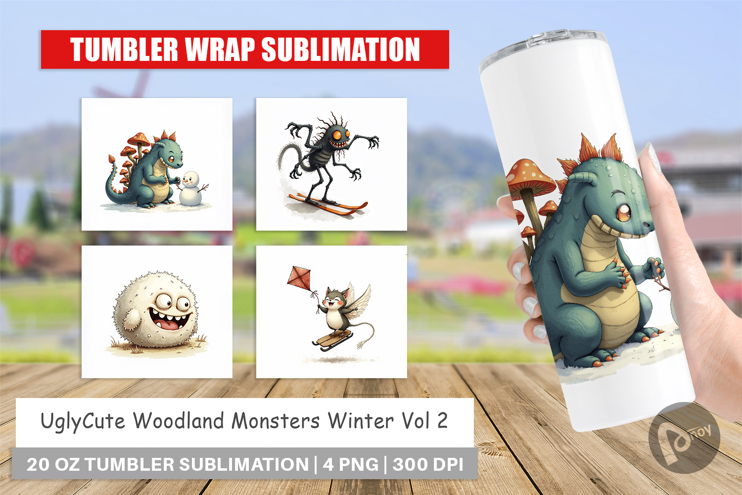 Diy Gift Idea Tumbler Sublimation Design Tumbler Wrap Png Cute Monster Tumbler Printable Tumbler Art Winter Season Gift Winter Sports Theme Uglycute Monster Gift Monster Lover Gift Woodland Monsters Wrap
