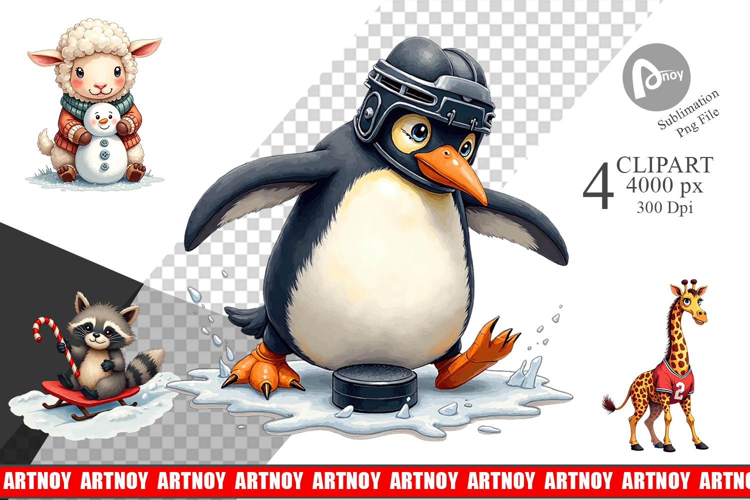 Scrapbook Elements Digital Clipart Sublimation Designs Winter Sports Clipart Animal Lover Gift Cute Animal Graphic Clipart Bundle Png Winter Season Gift Uglycute Animal Art Sports Animal Png