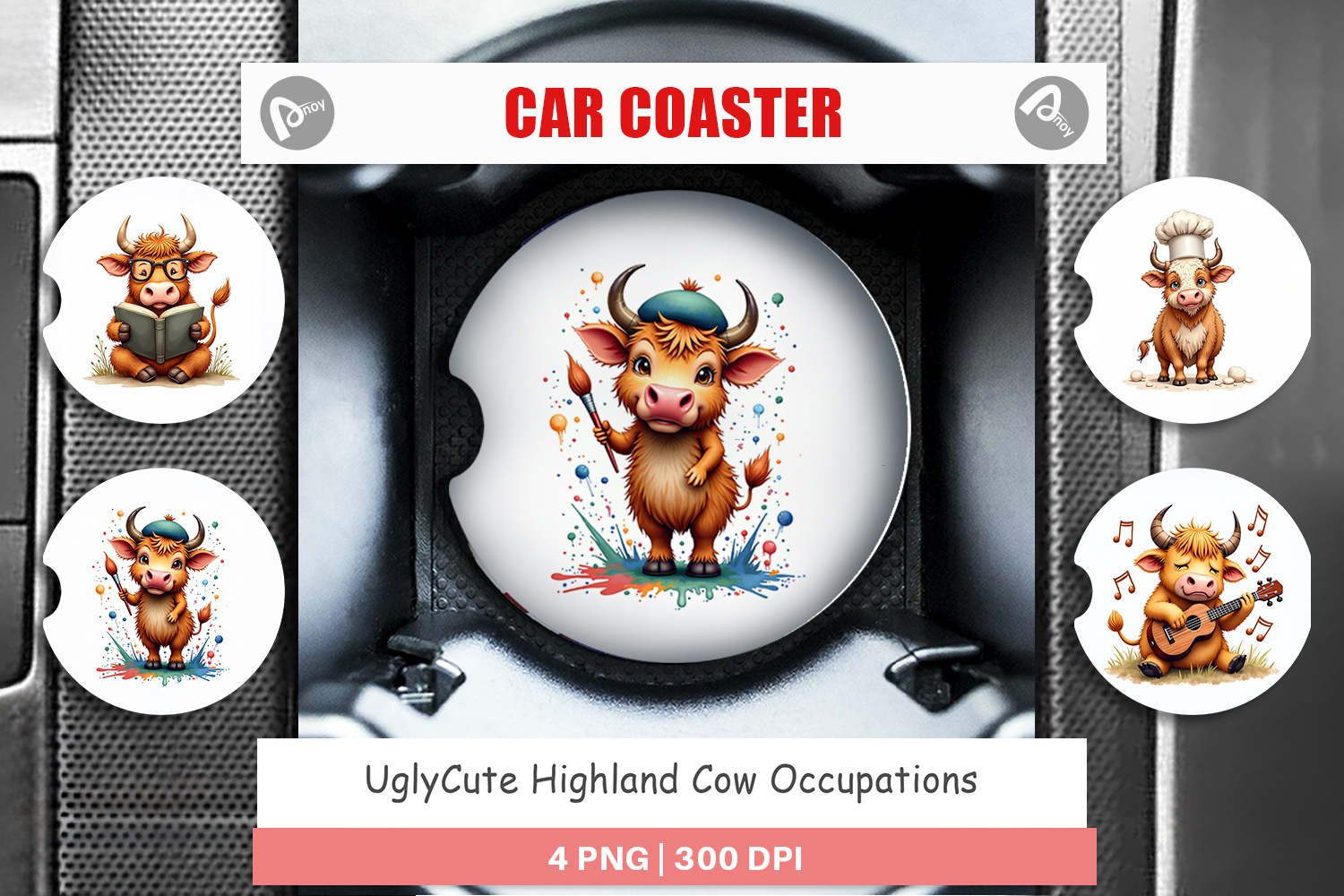 Sublimation Designs Car Coaster Png Car Coaster Sublimation Cow Lover Gift Printable Car Accessory Uglycute Cow Design Highland Cow Jobs Quirky Cow Occupations Cow Hobby Png Gift For Professional