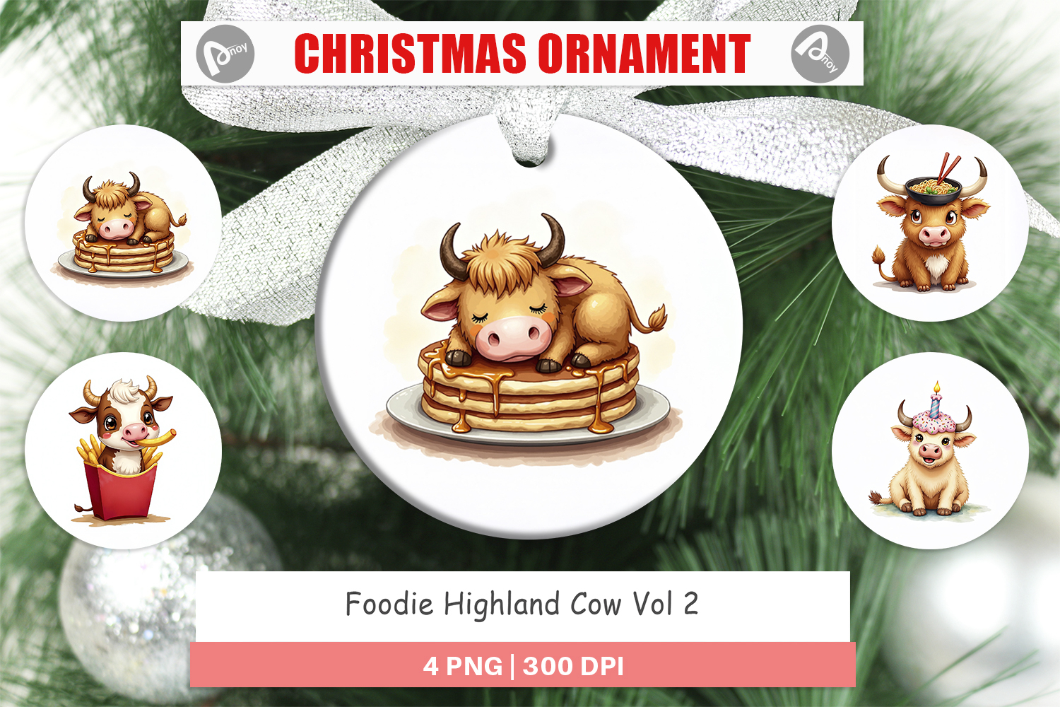 Sublimation Designs Diy Christmas Gift Highland Cow Png Ornament Design Png Round Ornament Sublimation Cow Lover Gift Gift For Foodie Foodie Highland Cow Uglycute Cow Decor Cow Treats Ornament