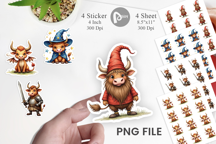 Planner Stickers Sublimation Designs Journal Stickers Printable Sticker Sheet Cow Lover Gift Printable Gift Idea Diy Sticker Design Enchanted Highland Cow Fantasy Cow Sticker Uglycute Cow Sticker