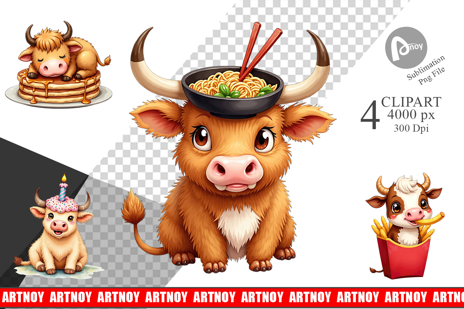 Scrapbook Elements Digital Clipart Printable Graphics Sublimation Designs Diy Gift Idea Clipart Bundle Png Gift For Foodie Foodie Highland Cow Uglycute Cow Png Cow Treats Clipart