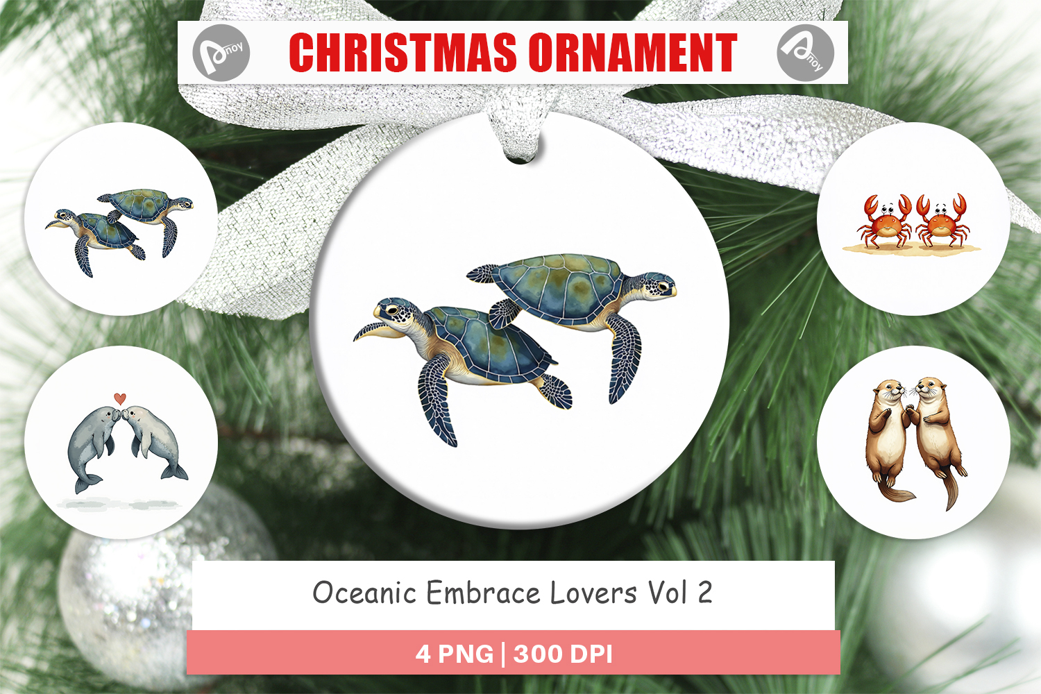 Sublimation Designs Gift For Couple Diy Gift Idea Ornament Design Png Round Ornament Sublimation Printable Holiday Gift Romantic Gift Idea Watercolor Lovers Art Ocean Theme Gift Oceanic Embrace Ornament