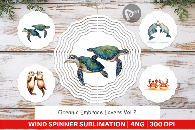 Sublimation Designs Gift For Couple Diy Gift Idea Wind Spinner Sublimation Sublimation Spinner Design Printable Garden Decor Romantic Gift Idea Watercolor Lovers Art Ocean Theme Gift Oceanic Embrace Spinner