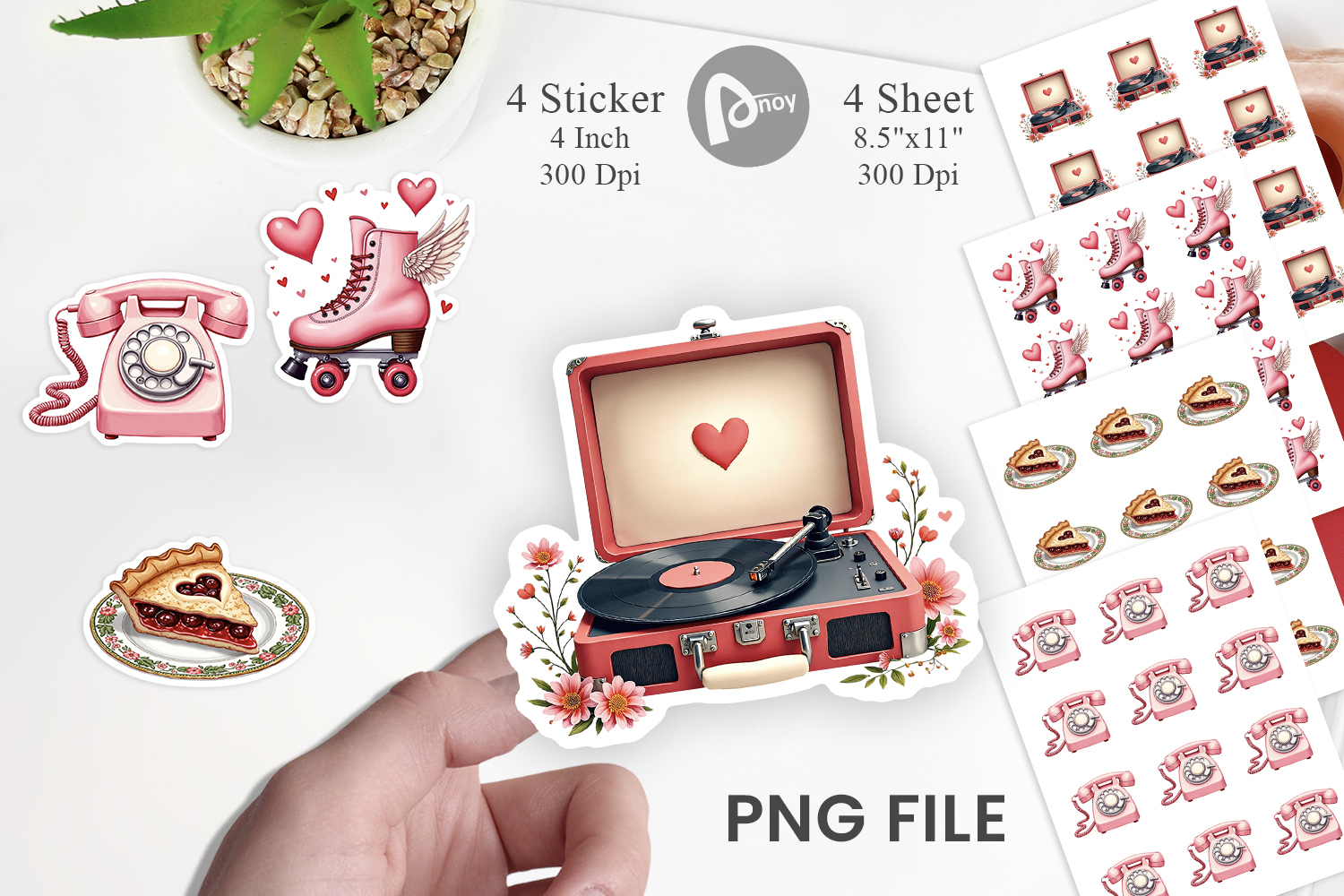Planner Stickers Sublimation Designs Valentine's Day Gift Journal Stickers Printable Sticker Sheet Retro Valentine Sticker Printable Craft Supply Sweetheart Cafe Art Retro Sweetheart Gift Diy Sticker Idea