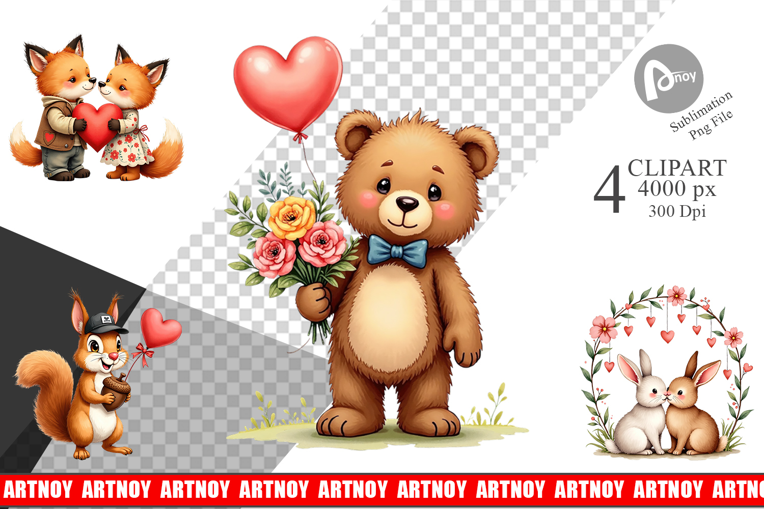 Scrapbook Elements Digital Clipart Sublimation Designs Gift For Reader Valentine's Day Craft Clipart Bundle Png Diy Graphic Design Woodland Valentine Art Storybook Clipart Png Whimsical Woodland Graphic