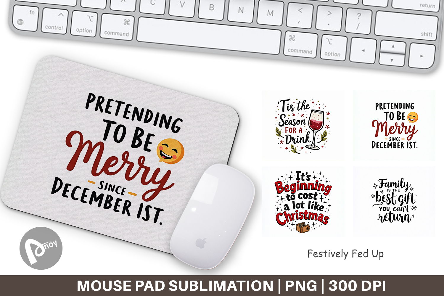 Sublimation Designs Funny Christmas Quote Diy Gift Idea Funny Christmas Gift Mouse Pad Sublimation Sarcastic Quote Png Mouse Pad Png Festively Fed Up Holiday Stress Quotes Relatable Holiday