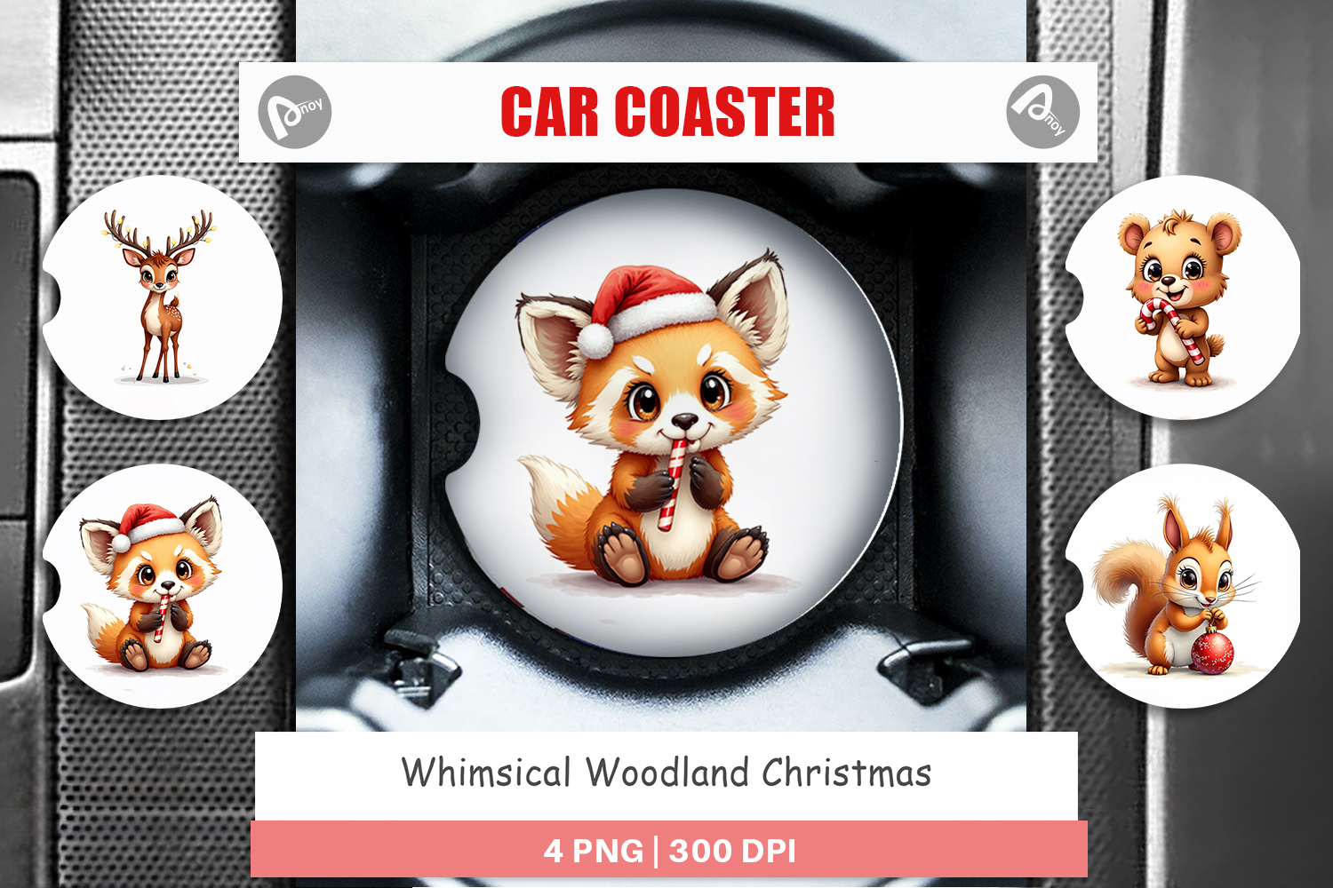 Woodland Christmas Sublimation Designs Car Coaster Png Car Coaster Sublimation Christmas Animal Png Printable Gift Idea Diy Car Accessory Whimsical Woodland Art Cute Animal Gift Vintage Forest Animal
