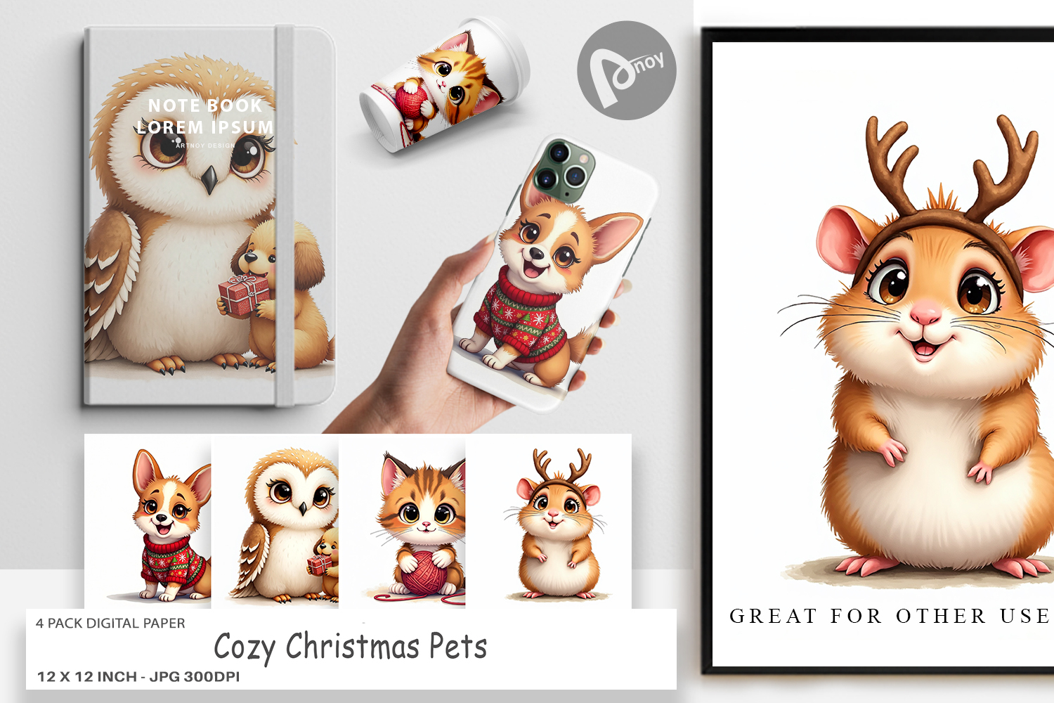 Similar Design Products to Cozy Christmas Pets Digital Paper