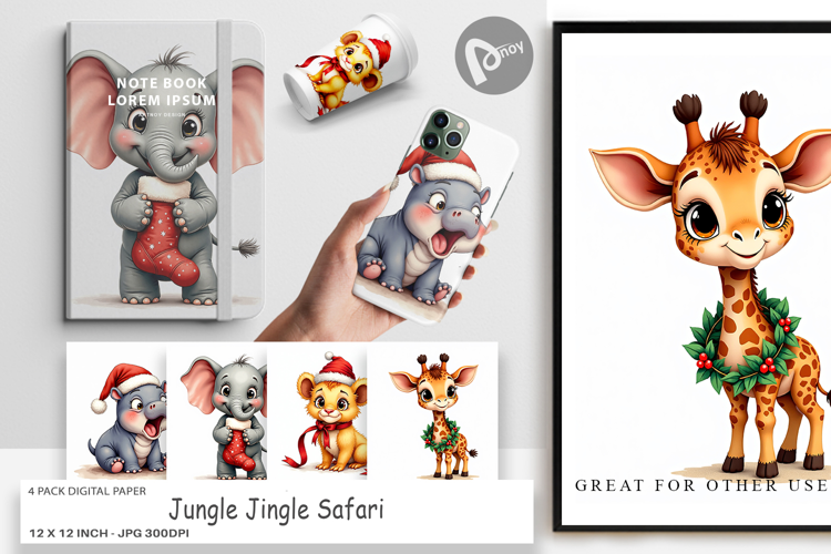 Digital Background Christmas Background Printable Scrapbook Paper Digital Paper Bundle Printable Craft Paper Safari Scrapbook Page Holiday Junk Journal Sublimation Paper Background Jungle Jingle Safari Vintage Safari Animal