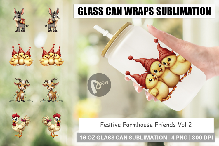 Sublimation Designs Christmas Drinkware Libbey Glass Sublimation Glass Can Wrap Png Farm Animal Wrap Vintage Christmas Art Farmhouse Style Gift Printable Glass Can Festive Farmhouse Cup Diy Cup Gift