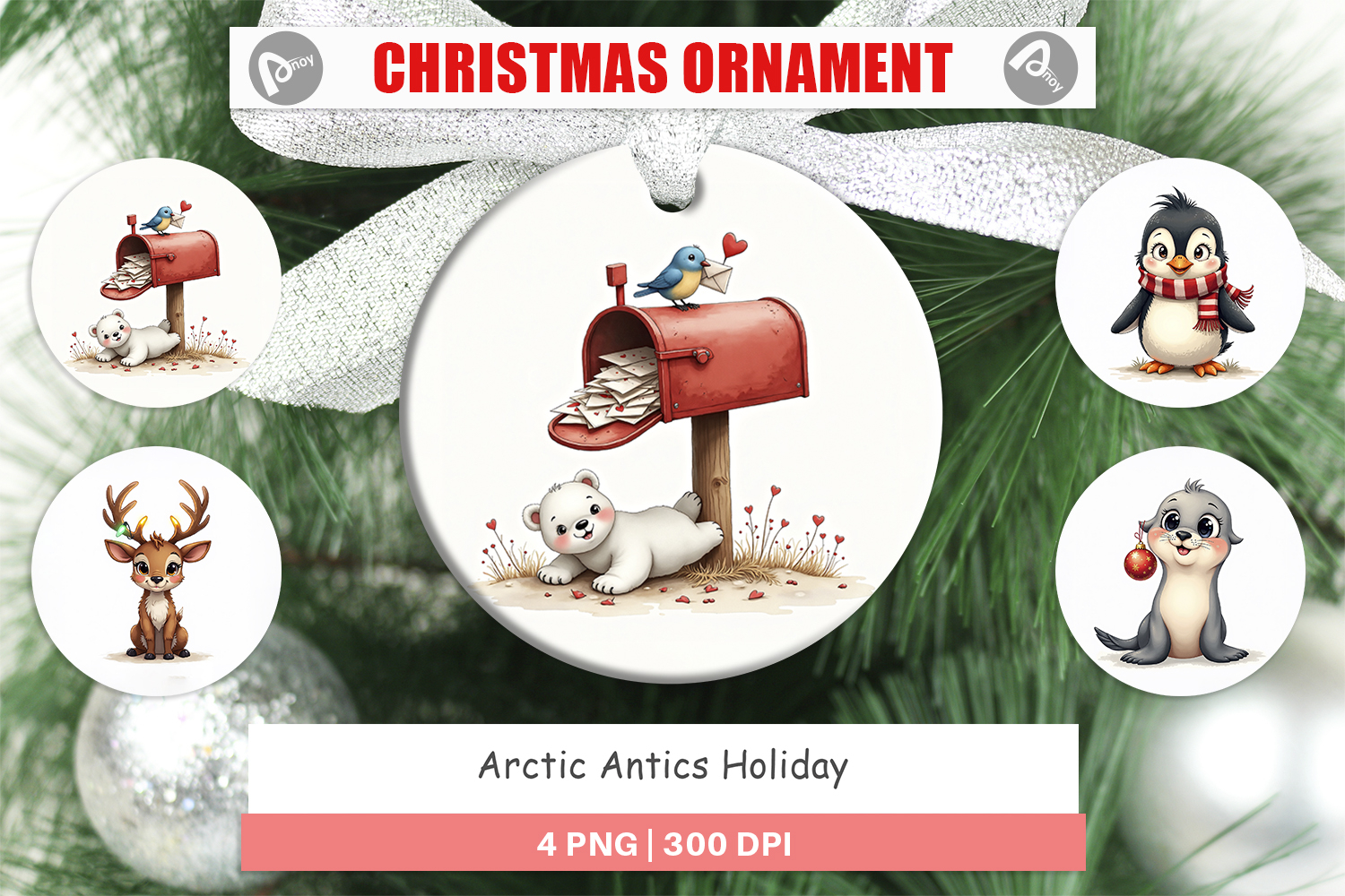 Sublimation Designs Christmas Tree Decor Diy Christmas Decor Ornament Design Png Round Ornament Sublimation Vintage Polar Bear Printable Gift Idea Holiday Ornament Png Winter Theme Gift Arctic Animal Ornament