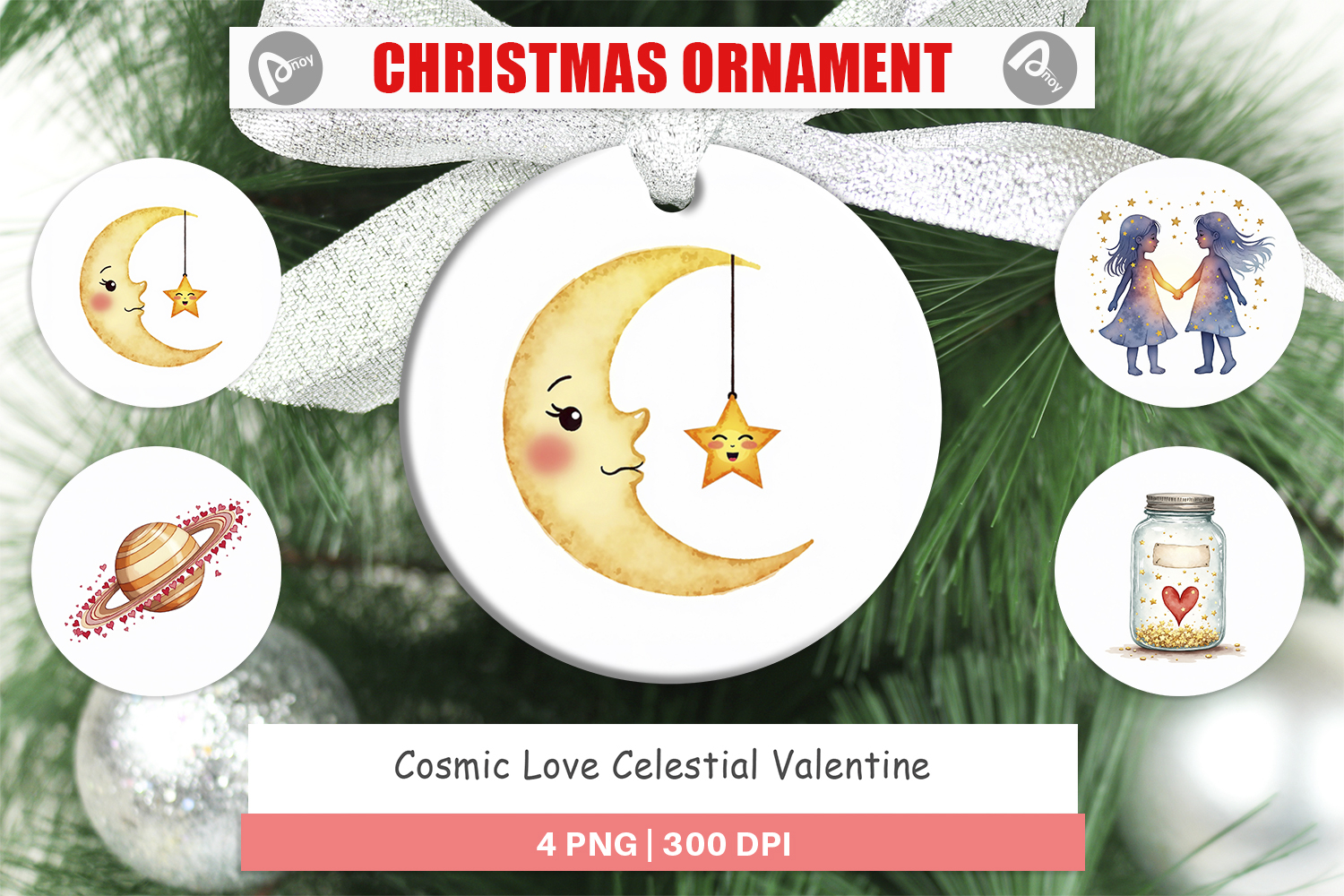 Gift For Her Sublimation Designs Diy Christmas Gift Valentine Ornament Ornament Design Png Printable Ornament Round Ornament Sublimation Cosmic Love Valentine Celestial Valentine Art Cosmic Love Design