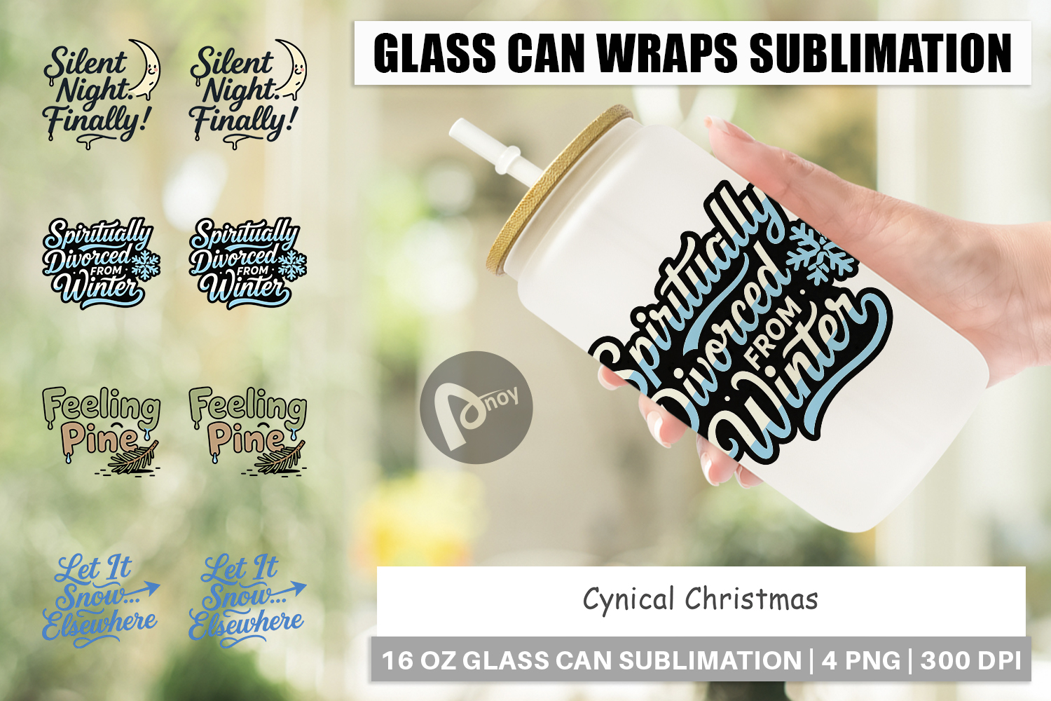 Cynical Christmas Phrases Glass Can example image 1