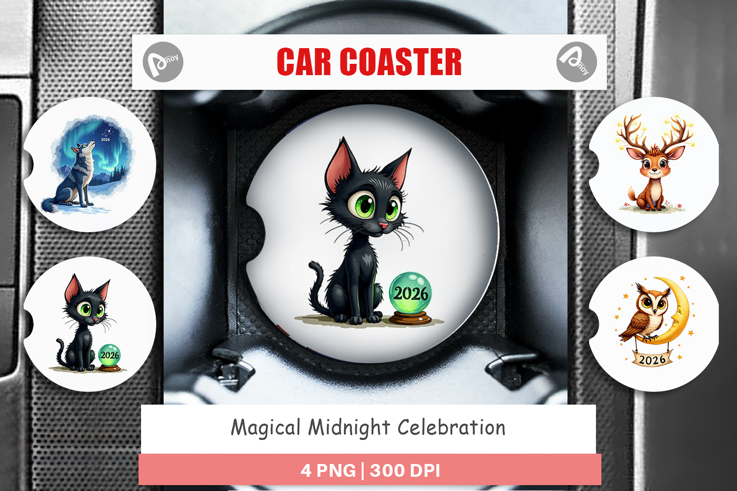 Sublimation Designs Magical New Year Car Coaster Png Car Coaster Sublimation New Year 2026 Printable Gift Png Midnight Celebration Diy Car Gift Animal Celebration New Year Party Gift