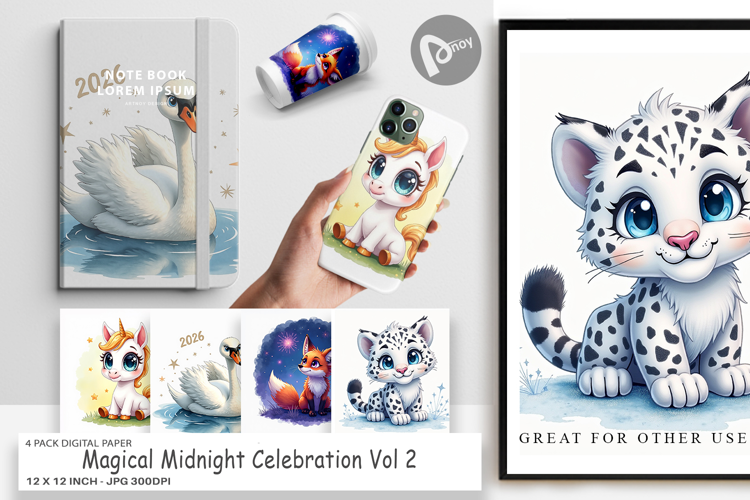 Digital Background Printable Scrapbook Paper Digital Paper Bundle Scrapbook Page Junk Journal Kit New Year Craft Paper Sublimation Paper Background Midnight Celebration Animal Celebration Magical New Year 2026