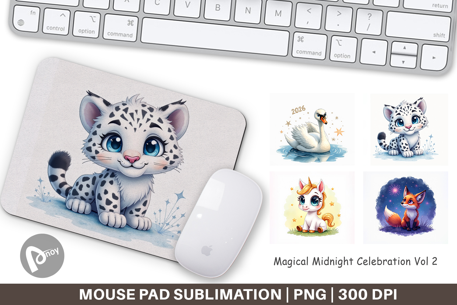Sublimation Designs Magical New Year Mouse Pad Sublimation Mouse Pad Png New Year 2026 Diy Desk Accessory Printable Gift Png Midnight Celebration Animal Celebration New Year Office Gift